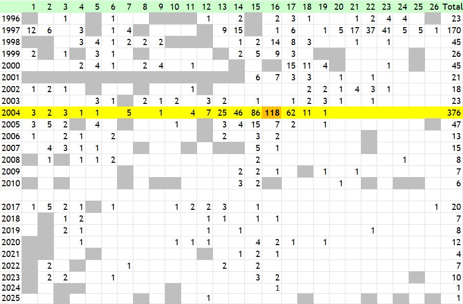 Latest date: 1 November 1997 at Monks Wood