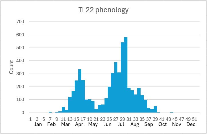 (second brood). The recent drier summers would probably have impacted on fresh growth of young nettles hence reducing potential fecundity of females and