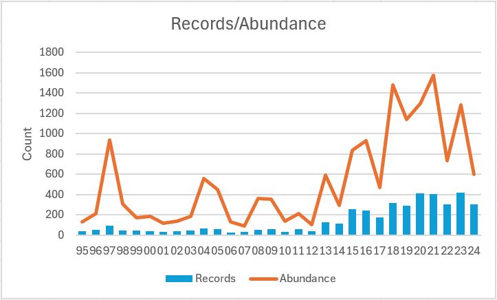 | Abundance | 1976-2024 | -18% | 1980-2015 | +1% |