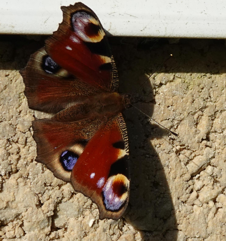 Peacock in Cuffley. First butterfly of the year flying around Cuffley Car Park this afternoon [Posted by Sam fuller]
