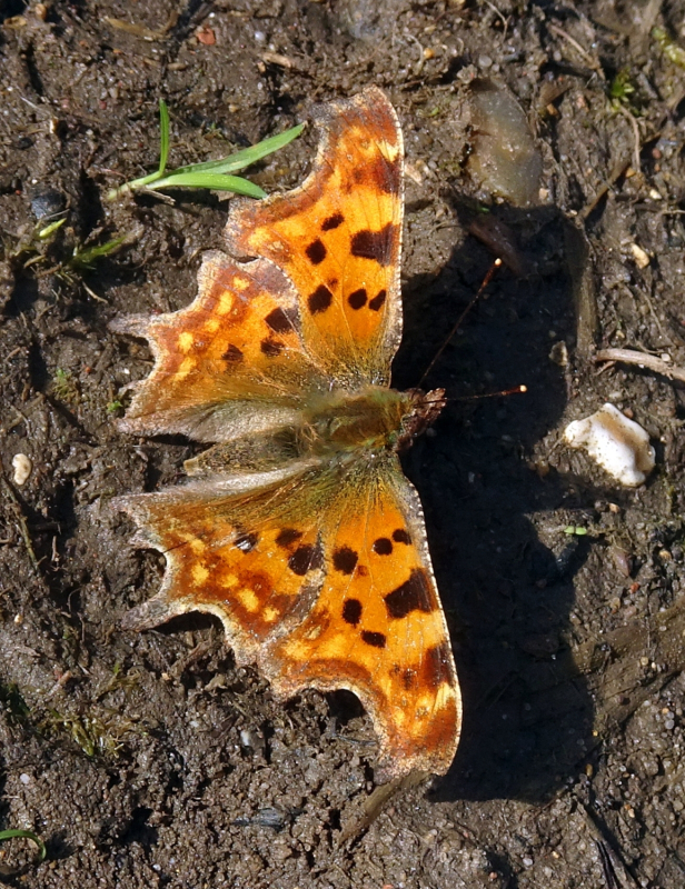 Sightings from Stanwell Moor. After a bit of fog had cleared mid-morning locally, the day became one long sunny period with temperatures up to 17 degrees. I ended up with an impressive butterfly count, finding 8 Peacocks, 7 Brimstones, 5 Commas and a single Red Admiral (it's less than ten weeks since I saw the last one). [Posted by Dave Miller]