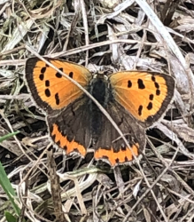 Small Copper on Wormwood Scrubs. Out and about today and saw a Small Copper on Wormwood Scrubs, along with several Speckled Wood and some whites. [Posted by Catharine Sowerby]