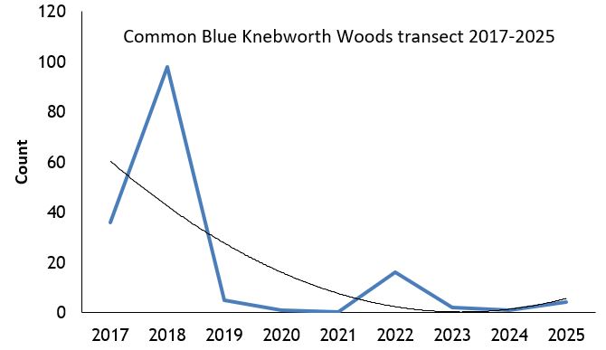 four adults were counted in that year. Dry and warm weather in 2025 fortunately reversed the recent decline. The best site is now Shackledell Grassland where
