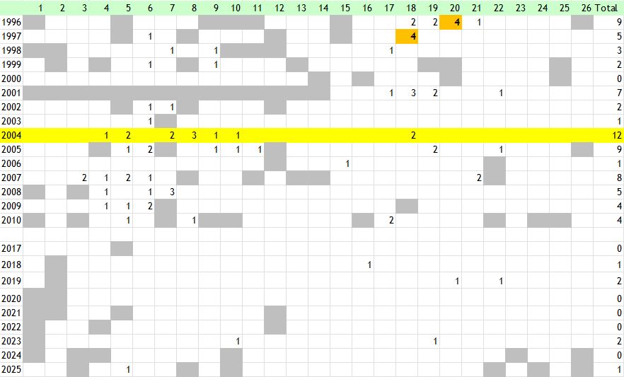 As shown on the map, the butterfly is well distributed in the Stevenage district. 2023 was a very productive year with 227 reports, a record for the TL22 square. Despite a reasonable start in 2024, numbers plummetted in the latter half of the year.