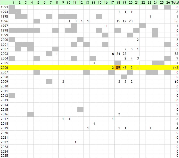 As indicated on the map, the butterfly is well distributed in the Stevenage area. The best year in terms of abundance in the area was in 2006 when high numbers were reported in late July and early August: 100 at Great Ashby Park on 24 July and 89 at Fairlands Valley Park on 29 July. The best count, though, was 128 on 6 August 2009 at Great Ashby Park. More than 100 reports came in for 2019, easily the highest on record, but none yielded more than eight individuals. Only 14 reports were received in 2024 and two of those were for specimens seen in October, unusually late in the season.