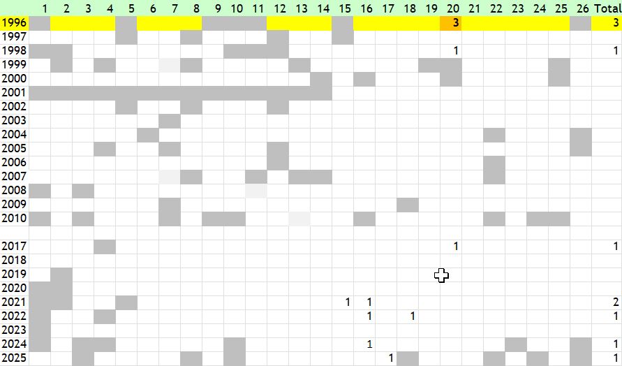 The Purple Hairstreak occurs mostly in the wooded areas around Stevenage and is most abundant in the Knebworth Woods complex where the large majority of sightings are recorded. The highest count was recorded there on 24 July 2004 and on 12 July 2018 when an estimated 100 were seen which accounts for a slightly uneven distribution of abundance on the phenology chart. It is under-recorded and it is possible that every mature oak tree in our area will support colonies. In the current 5-year cycle (2020-2024) first-ever known records came from the far west (TL22C and TL22D) which is predominantly agricultural land. 2018 was an exceptional year at the Knebworth Woods complex - see below for transect results. 2024 was the worst year since 2012, with only seven reports, one of which recorded five specimens during a Wider Countryside Butterfly Survey in the Knebworth Woods complex on 27 June.
