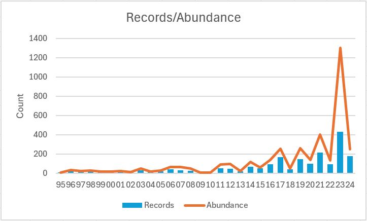 | Abundance | 1976-2024 | +311% | 1980-2015 | +36% |