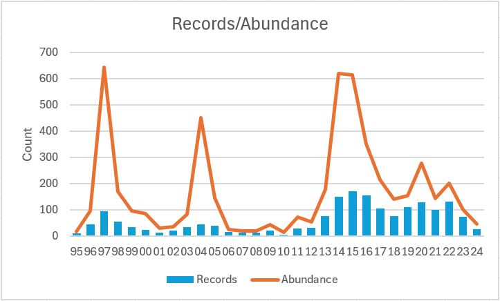 | Abundance | 1976-2024 | -86% | 1980-2015 | -29% |