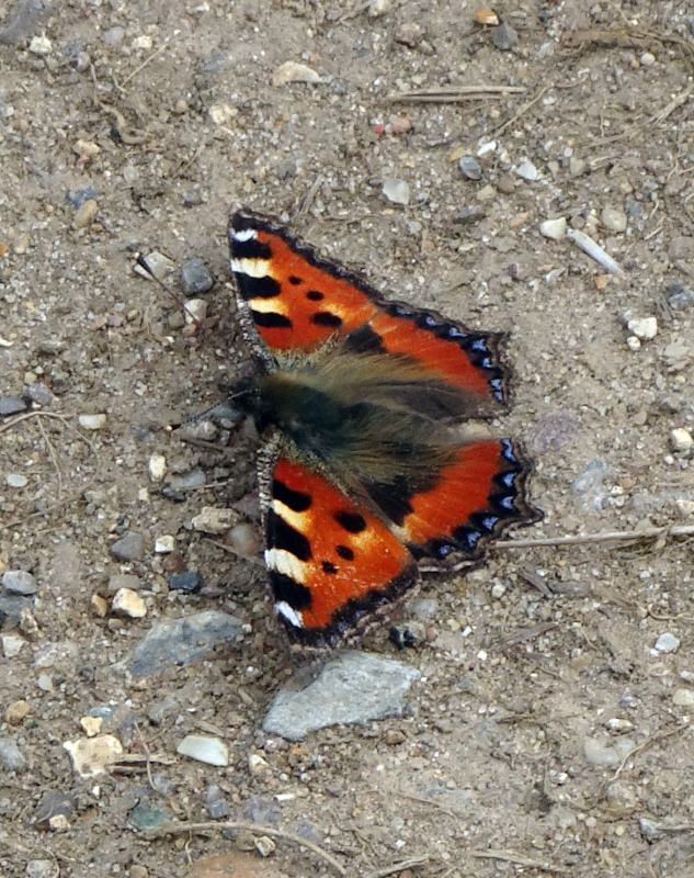 Sightings from Stanwell Moor. Some spells of intermittent sunshine today locally after a drizzly start - not cold, but the warmth of the sunny spells was tempered by a cool breeze. However, there were a lot of butterflies around, and all eleven of the species I've seen here this year made an appearance. In particular, Holly Blue numbers rose dramatically - good news after two comparatively poor seasons. Orange-tip numbers were high too, a new set of Red Admirals were occupying the favoured spot, and another Small Tortoiseshell appeared today. The totals: Peacock (34), Orange-tip (31), Holly Blue (25), Green-veined White (14), Brimstone (12), Small White (11), Speckled Wood (4), Comma (4), Red Admiral (3), Large White (2), Small Tortoiseshell (1). [Posted by Dave Miller]