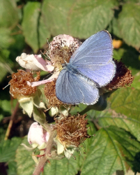 Sightings from Stanwell Moor. Lots of sunshine today locally after the rain cleared at 10 o'clock. Around the middle of the day it felt warm in spots sheltered from the breeze, and I found three different Red Admirals (all of which I'd encountered before recently). However, the surprise sighting today was a male Holly Blue on one of the last remaining bramble flowers. It wasn't fresh, so must likely have emerged before the recent frosty spell. [Posted by Dave Miller]