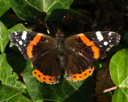 Sightings at Stanwell Moor. After several frosty nights and some wet snow flurries a couple of mornings ago, the sun shone today round my way and the temperature climbed from minus one just before dawn to plus seven by lunchtime. This was enough to tempt a couple of Red Admirals out into the sunshine. [Posted by Dave Miller]