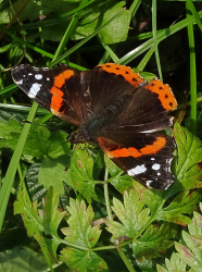 Sightings from Stanwell Moor. Even warmer and sunnier than 12th, a slightly different set of butterflies were seen on my local walk today: Five Red Admirals, a Brimstone, the same Speckled Wood as yesterday (but on the other side of the A3113 dual carriageway!), and a female Holly Blue. The last of these was being pestered by a Red Admiral, so only poor photos. Likewise the Brimstone was only caught as it flew past. [Posted by Dave Miller]