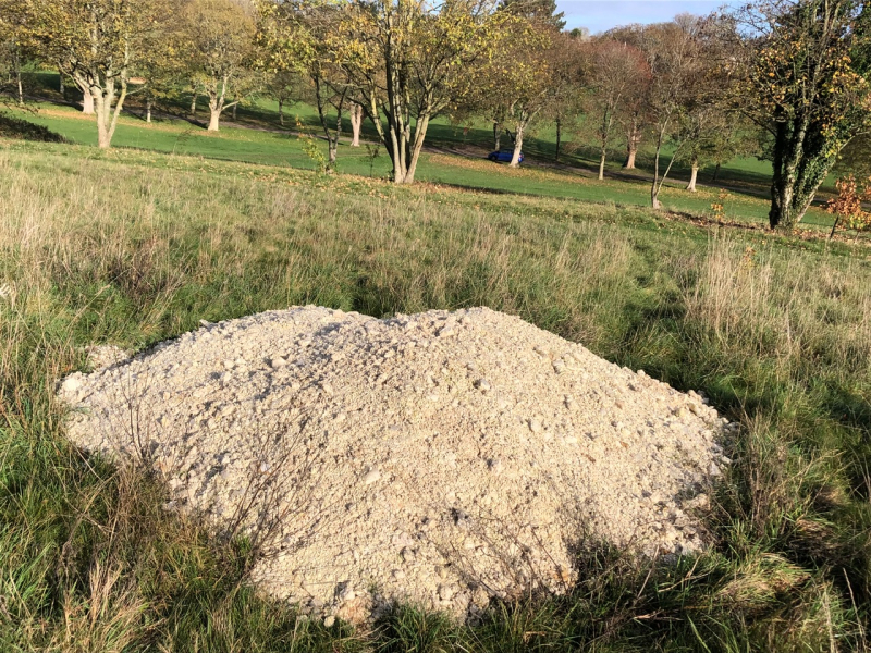 New butterfly mound in St Albans. Last winter St Albans District Council carried out alterations to Batchwood golf course. This revealed chalk bedrock, some of which was set aside to form a butterfly mound. Today I seeded it with Kidney Vetch and Birds-foot Trefoil. These plants should encourage both Common Blue and Small Blue. Both butterfly species are already present in the landscape. This site should provide a valuable stepping stone to help connect their existing sites [Posted by Malcolm Hull]