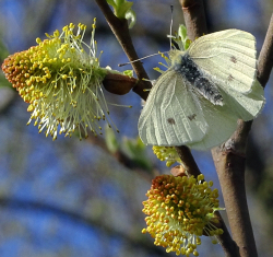 Tracks around Danemead HMWT. Enjoyed a morning walk in the glorious spring sunshine to check the goat willow catkins for butterflies. The usual hibernators seen Peacock 25+, Brimstone 6 (males), Comma 5 and Light Orange Underwing 4. One very excited Brimstone male thought he found the love he had been dreaming about all winter and was very upset at me for litter picking his mate. [Posted by Nathan Ellis]