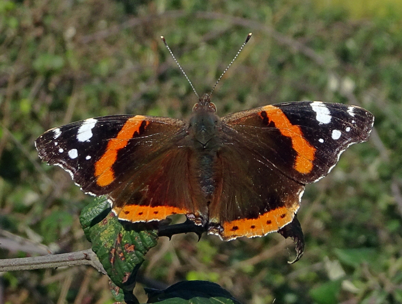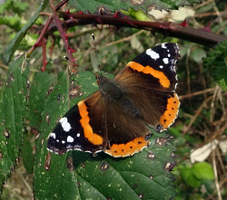 Sightings from Stanwell Moor. During one of the very sparse sunny intervals today, two of the Red Admirals that have set up shop on a certain spot on my local patch were tussling as usual. No other butterflies seen today though. [Posted by Dave Miller]