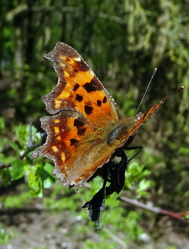 Comma at Trent Park. 1 Comma along Leeging Beech Gutter near 'Three Bridges', Trent Park this afternoon at 1314 GMT. [Posted by Robert Mark Callf]