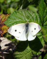 Large White on Harpenden Common. Large White, Green-veined White, Orange-tip, Holly Blue, Peacock, Comma and Speckled Wood on Harpenden Common this afternoon. [Posted by David Hunt]