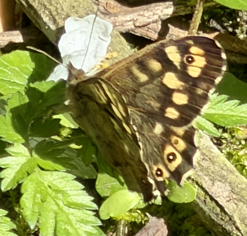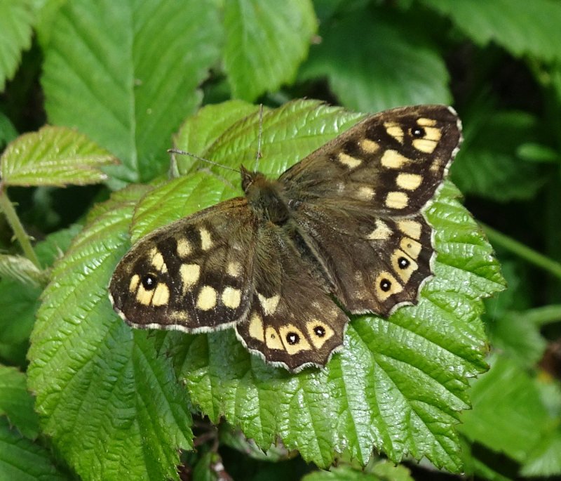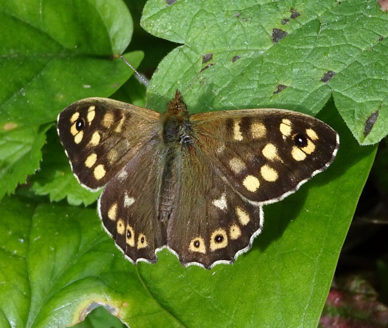 Speckled Wood. Speckled Wood seen outside Main Hide at Lemsford Springs [Posted by Rose Newbold]