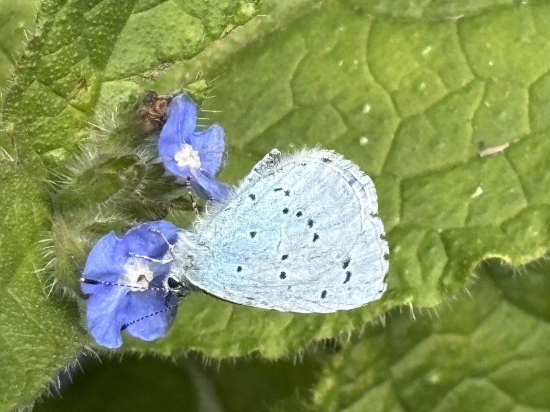 Sightings at Enfield, Edmonton & Southgate. At a private site near Trent Park - male Orange-tip & 1 Speckled Wood. At Statham Grove, N18 - 1 Holly Blue, 1 Green-veined White, male Orange-tip & 1 Speckled Wood. At Tanners End Lane, N18 - male Brimstone. At ASDA Southgate - 1 Holly Blue. At Southgate Chase Allotments - 2 Holly Blue together. At Dalrymple Close, N14 - 1 Holly Blue. My first sightings of Holly Blue this year [FOY]. [Posted by Robert Mark Callf]