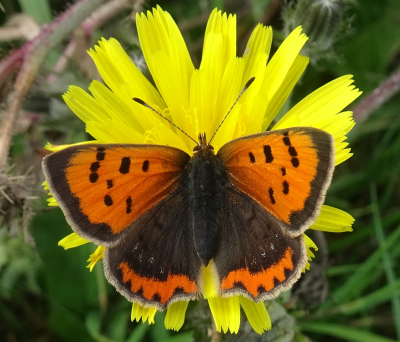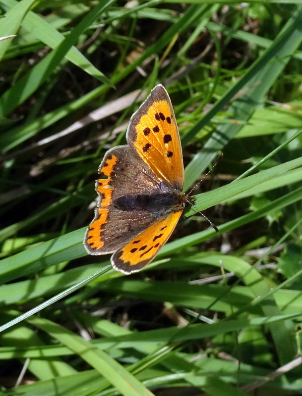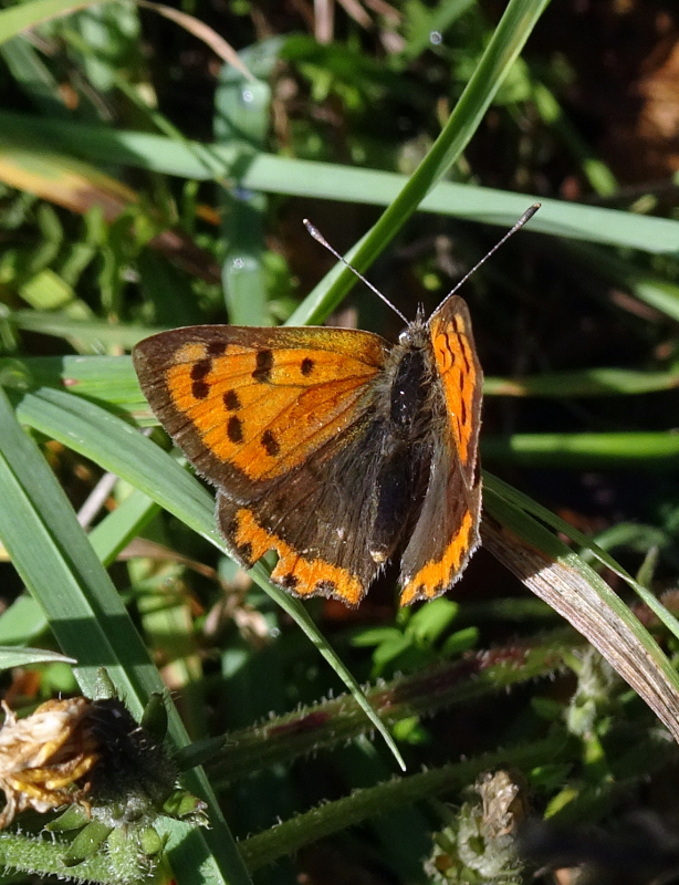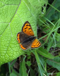 Small Copper on Wormwood Scrubs. Out and about today and saw a Small Copper on Wormwood Scrubs, along with several Speckled Wood and some whites. [Posted by Catharine Sowerby]