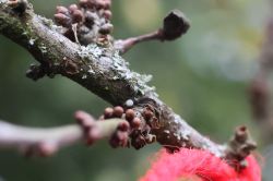 A few more Brown Hairstreak eggs at South Oxhey Playing Fields.. After yesterdays eggs found at South Oxhey Playing Fields we covered a bit more area than yesterday. We found a further 10 eggs with 2 near where the only one found last year was recorded and the rest a found nearby with the furthest by Hampermill Wood. 2 eggs found on older growth with Lichen on. We have marked up again with the red wool I had left over from last year at Prestwick Road Meadows. There are still bits that haven't been searched for eggs yet but 57 over the weekend is far greater than we imagined! With Rohan's count of eggs found at Croxley Moor it does seem that a Brown Hairstreak revival is going on in this corner of Hertfordshire!! [Posted by Peter Fewell]