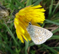 Common Blue. I persuaded a Common Blue to perch on my finger today in cool breezy conditions at Hill End Chalk Pit reserve, near Hitchin [Posted by Phil Barron]