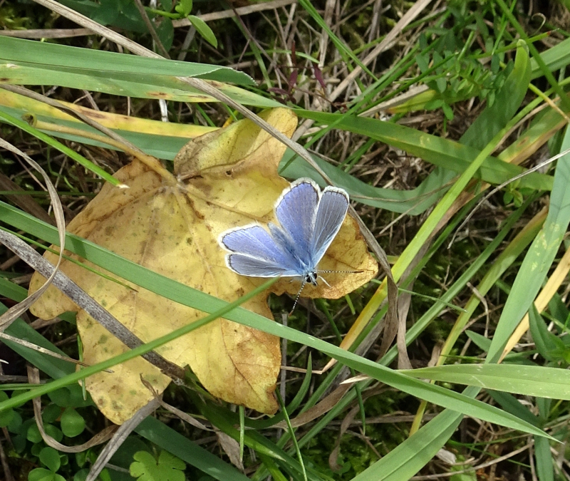 Adonis Blues still on Therfield Heath. Two fresh male Adonis Blues were seen this morning on the Old Rifle Range, along with several rather tatty females (some of which may have been female Chalk Hill Blues, although no males of this species were seen). At least one female Common Blue and several Meadow Browns were recorded, whilst Speckled Woods and a mating pair of Green-veined Whites were seen just off the heath. Relatively speaking, this has been an excellent year for Small Copper butterflies on the heath, with double figure numbers recorded in late August (normally I only see one or two individuals per year). However, unfortunately Wednesday's monsoon seems to have done for them. [Posted by Martin Johnson]