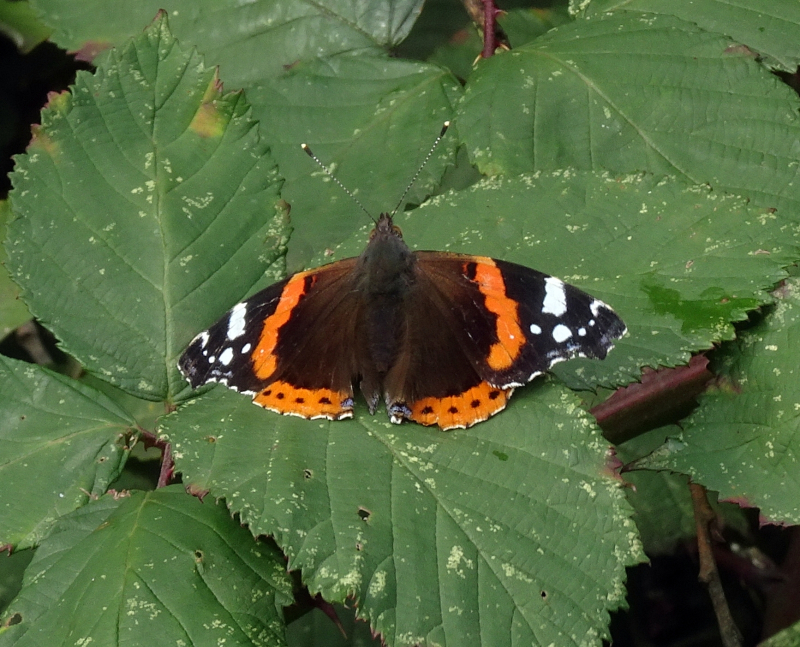 Red Admiral at Trent Park. 1 Red Admiral settled near top of Snakes Lane, Trent Park at 1228 GMT. [Posted by Robert Mark Callf]